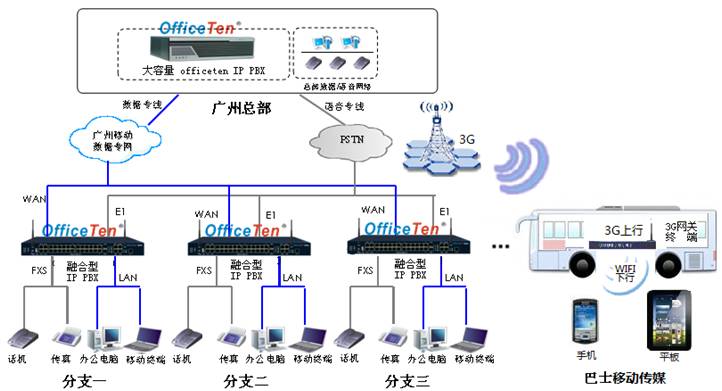 廣州廣之旅國際旅行社股份有限公司,是華南地區(qū)規(guī)模至大,實力至強,美譽度至高的旅行社,成為國內唯一獲得全國旅游業(yè)質量管理最高榮譽“中國用戶滿 意鼎”的綜合性強社,由于公司先進信息化體系是全國旅行社中唯一被國家信息產業(yè)部指定的“國家電子商務試點單位”。目前廣之旅在廣州市內已擁有50多家營 業(yè)點,由于企業(yè)迅速發(fā)展,各個門店之間以及和總部之間通信迅量猛增長。但是各個門店通信系統(tǒng)相對獨立,語音和寬帶線路分離,管理較為不便,溝通效率較低。 為樹立旅游行業(yè)服務標準,公司決定在全國率先提供顧客在旅行大巴途中的WiFi上網服務。為了解決公司目前面臨的問題與滿足WiFi上網的需求,廣之旅提 出建設高質量、高效能并能夠集語音、寬帶、3G、無線為一體的旅游通信平臺,提升企業(yè)內部的業(yè)務流程和效率,簡化組網方案。