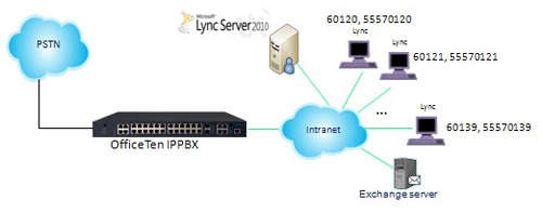 新建網(wǎng)經(jīng)科技OfficeTen IPPBX,與Lync系統(tǒng)通過SIP中繼對接,通過PRI中繼連接到運(yùn)營商PSTN。設(shè)定LYNC用戶分機(jī)號碼為6+外線號碼后4位,通過上述配置方案實(shí)現(xiàn)了濟(jì)南洪恩LYNC用戶和外線一一對應(yīng),每一個(gè)Lync用戶有獨(dú)立的外線號碼,方便與外部通信,提高工作效率。